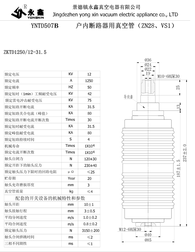 YNTD507B戶內斷路器用真空管(ZN28、VS1-F型)