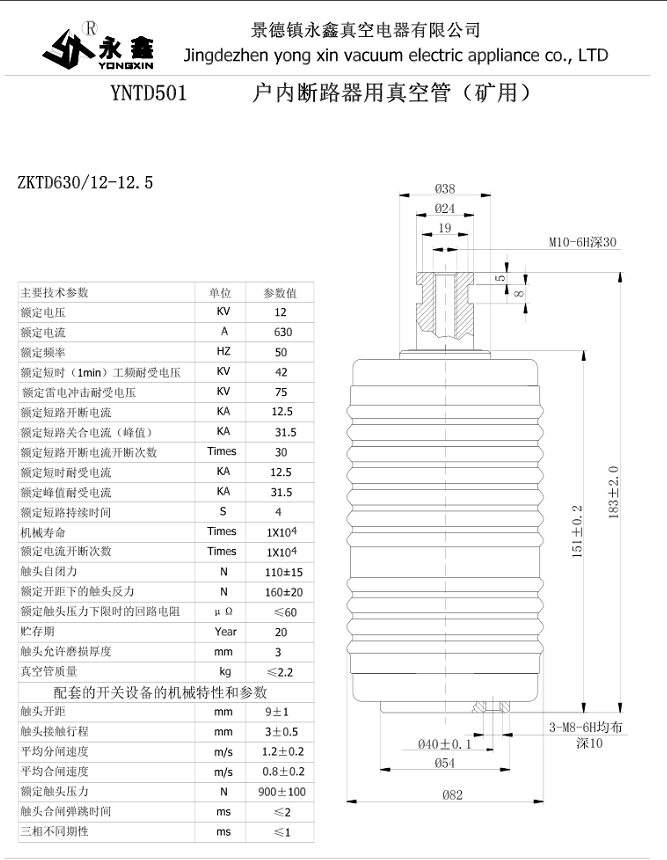 此型真空滅弧室采用一次封排工藝、陶瓷外殼,采用縱磁場觸頭結構,具有開斷容量大、絕緣