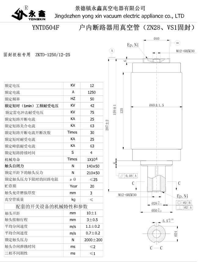 YNTD504F固封極柱用真空管(ZN28、VS1-J型固封極柱