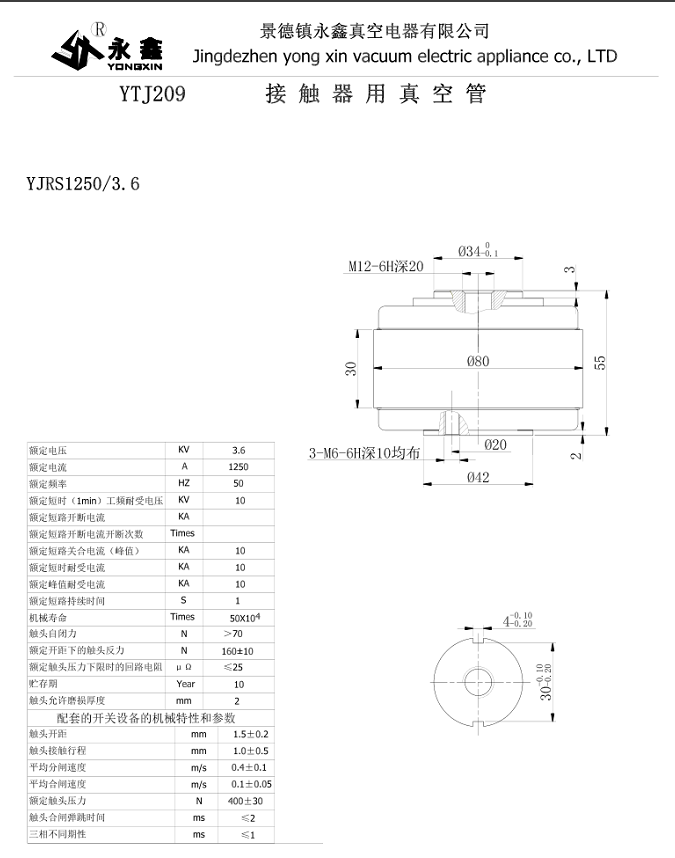 此型號真空滅弧室采用一次封排工藝、陶瓷外殼,觸頭為CuWc合金材料,具有